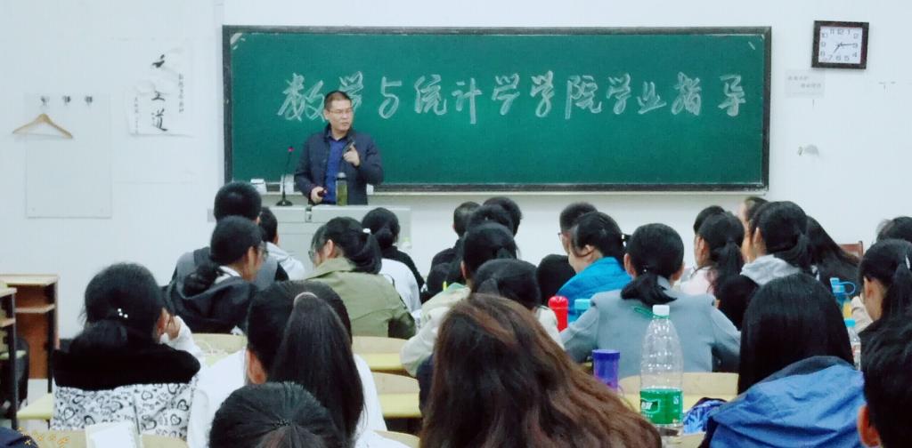 曾祥勇从数统学院的师资力量和人才培养两个主要方面向学生们作出详细介绍。他强调,学生一定要对自己选择学习的专业充满信心,相信自己可以学好每一个科目。他建议在座学生要将理论学习与科学实践紧密结合, 从而更好地掌握数学与统计学的相关知识。
