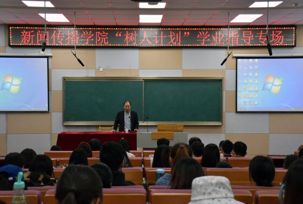 4月16日晚,新闻传播学院来院开展“树人计划”学业指导。新闻传播学院党委书记边湘义,院长廖声武,党委副书记刘东,副院长杨翠芬,辅导员武月及优秀学生代表来院。2018级新闻传播学类、播音与主持艺术专业学生参加。