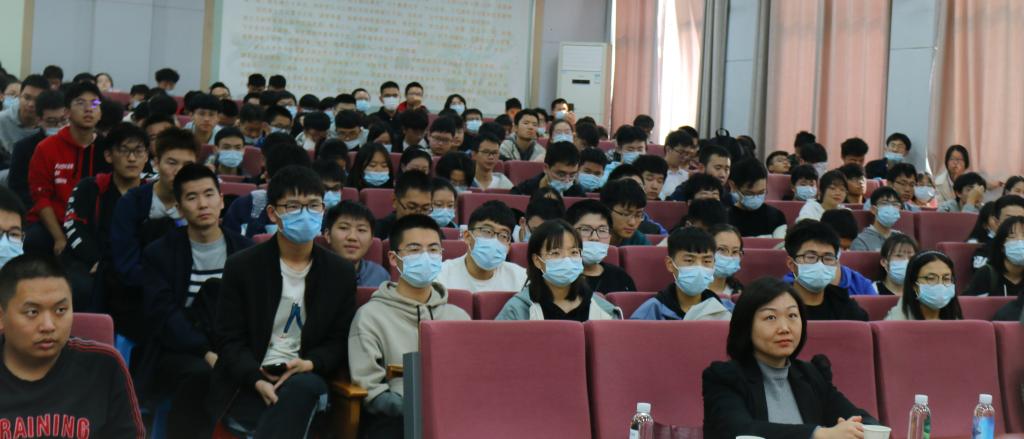 王晓玲详细介绍了物电学院特色学生活动及往届优秀毕业学生。她勉励同学们学会自主自律,贯彻终生学习的理念,“持续学习对于有些人只是在增加经验,但只有持续深度学习才能形成自己的知识体系,思维体系。”