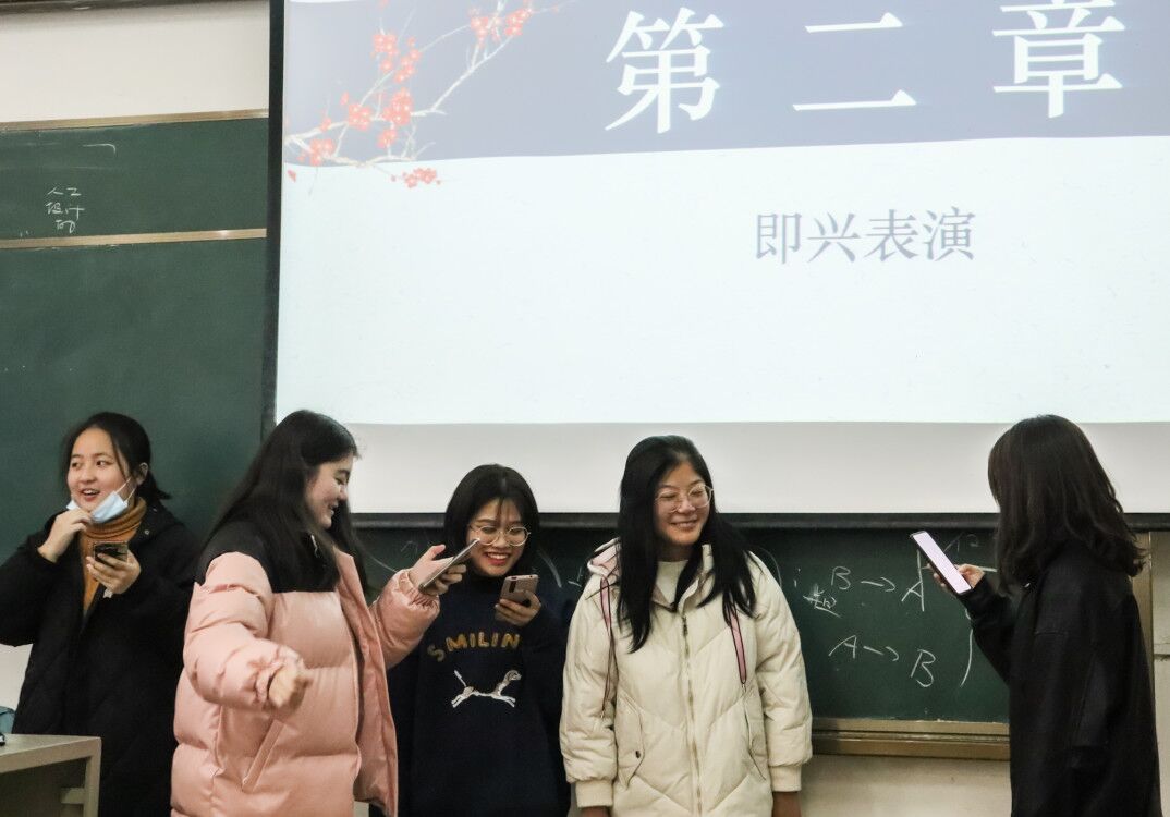 课堂上,各小组轮流上台表演本组自选的文学作品片段,给出作品关键词后,其他小组成员根据表演猜测文学作品。苏轼的《江城子》、余华的《许三观卖血记》、石黑一雄的《莫失莫忘》……古今中外的文学作品都被学生们搬上舞台。更有学生对文学作品进行改编:在灰姑娘的故事中融入潘金莲与西门庆的邂逅情节,把《水浒传》中的经典台词搬到话剧《雷雨》里……演绎鲁迅作品《药》时,中国语言文学类专业学生欧其晟身着《哈利波特》霍格沃茨的校服,左顾右盼大步走到台上,冲着角色老栓的饰演者大喊:“老栓,你有些不舒服么?——你生病么?”说完欧其晟又单手搭在“老栓”的肩上,嘴里却念起了《指环王》的经典台词:“真相,是一种美丽而可怕的东西,需要格外谨慎地对待。”坐在台下的学生,目光紧随着台上的演员,不时捂嘴憋笑,不时笑闹鼓掌。待所有表演结束后,全体学生进行了现场投票,《药》改编作品遗憾落选“最佳表演奖”。但作品中“华大妈”的饰演者2020级中国语言文学类专业学生周佳萱说:“参与表演很有趣,作品的改编也很新颖。即使没有拿到好成绩,但是我们全组都玩的很开心。”