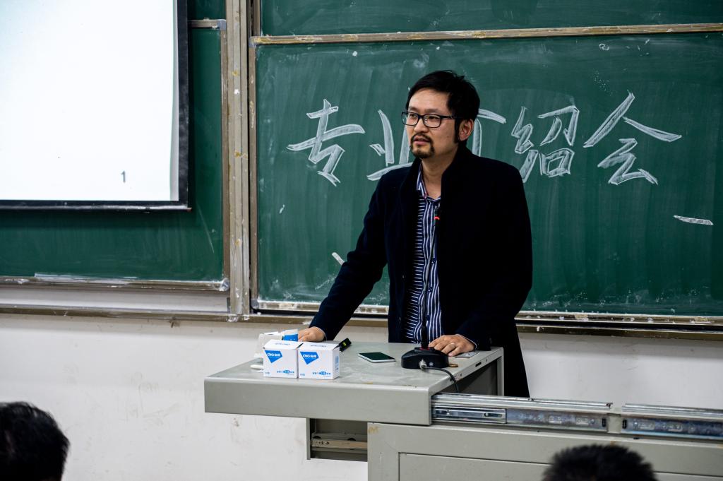 刘泱杰则首先向学生简要介绍了本专业的研究对象与主要研究方向。接着,他结合湖大光电研究情况向学生们展示了我校发光材料显示、光电探测器等具体科研项目,并欢迎同学报名加入光管研究组本科生科研项目——“追光计划”。在谈论到毕业生的就业率、就业去向时,夏晨引用武汉市就业第三方评价体系调研结果,指出我校毕业生具有良好的综合素养与能力。他与刘泱杰通过展示近两年微电子学院考研情况,激励同学们认真学习,在微电子领域成就更好的自己。