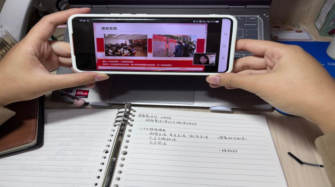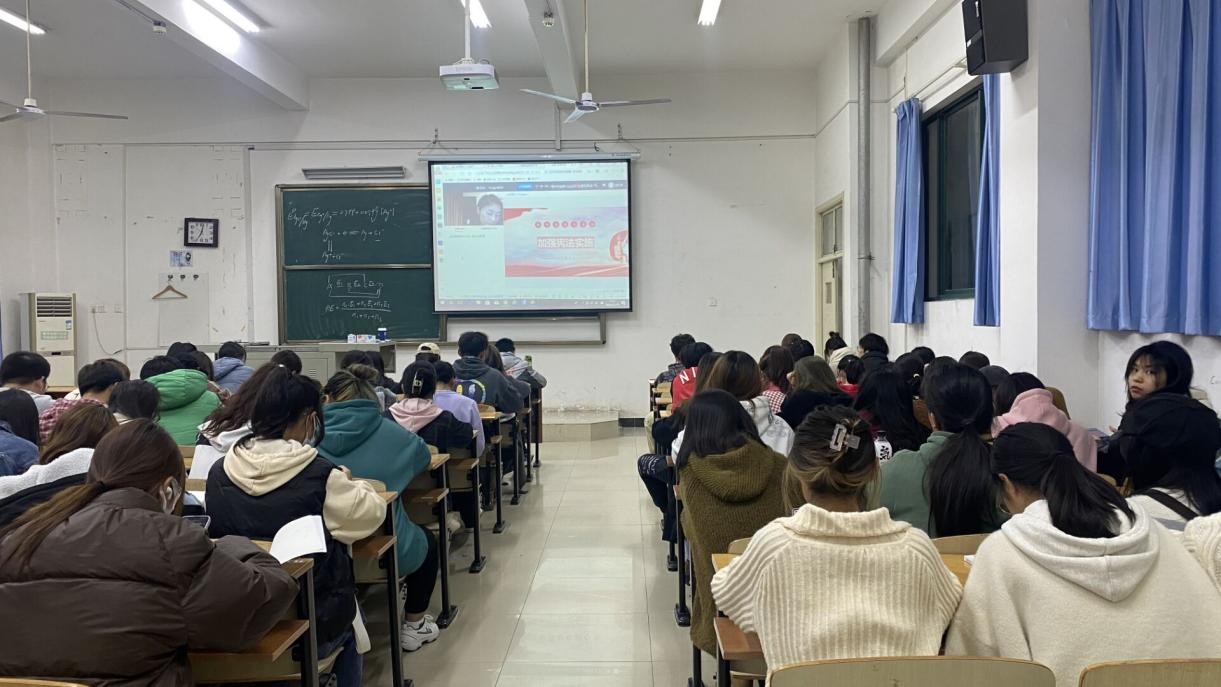 11月18日晚,湖北大学A级内射毛片免费的全体学生上了一堂精彩的《思想道德与法治》宪法公开课,湖北省第八届青年教师教学竞赛获奖者、湖北大学马克思主义学院教师卢瑶为主讲人,围绕“加强宪法实施”主题,以新颖的线上直播讲课方式、优质的教学内容,使学生在愉快的课堂氛围中对宪法有了深入的了解,激起了“学宪热”。