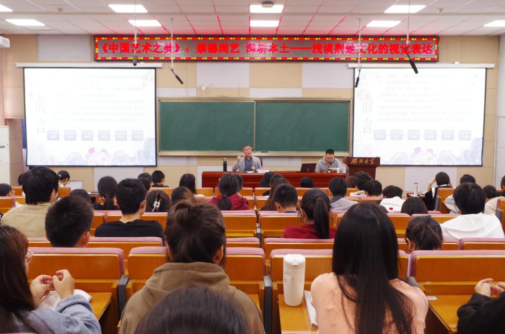10月21日上午,中国电视艺术家协会理事、湖北广播电视台首席导演郭光俊应邀到湖北大学阳逻校区讲授本学期通识教育选修课《中国艺术之美》第二讲“浅谈荆楚文化的视觉表达”。