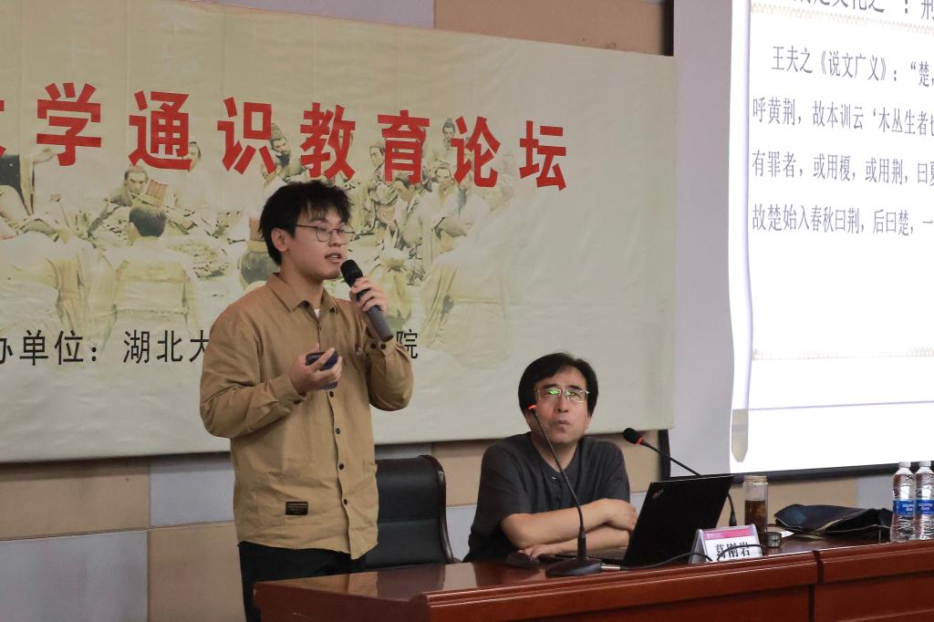 葛刚岩从“荆与楚的关系”“《天问》的生成”“为什么早期文献中没有屈原的记载”三点切入,以史论结合的方式,有理有据地为学生展开讲述。他指出地名多根据地表特征而取,而上古国名又多源于地名,由此逐步解答荆楚地名之变的中心问题。