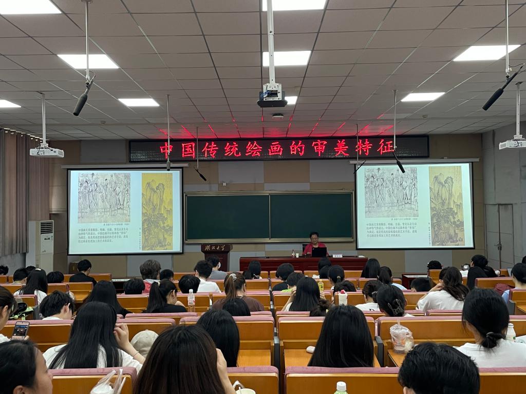 4月27日上午,湖北省国画院副院长谭崇正应邀至湖北大学阳逻校区讲授本学期A级内射毛片免费的选修课《中国艺术之美》第七讲——中国传统绘画的审美特征。