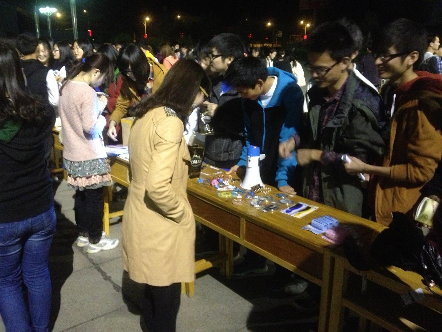 4月7日晚七点,行政楼前热闹非凡,各摊位前人头攒动,引来许多感兴趣的同学围观,摊主们卖力地大声吆喝着自己所兜售的商品,商品从平时吃的零食到饰品衣物至路由器应有尽有。这里并不是商场在打折促销,这是创业者协会的同学们在进行“创业者夜市”活动的现场,同学们正为自己心仪的商品和摊主们讨价还价着。