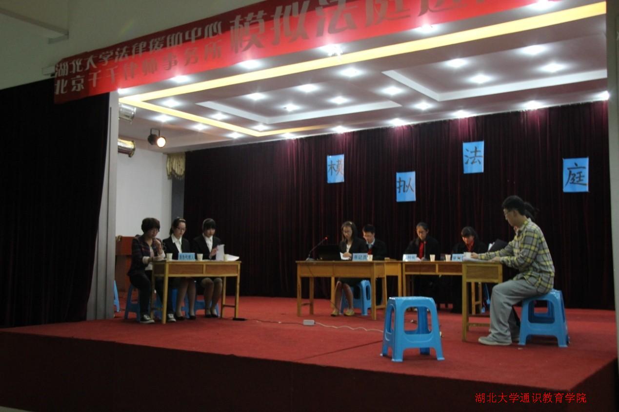 此次“法庭”模拟的是一场离婚诉讼案件。晚上七点,模拟法庭正式开庭,审判长、陪审员、律师、被告与原告均已入席,并且都穿着正式的制服。首先是全体起立,书记员宣布法庭纪律;接下来是法庭调查阶段,双方当事人向法庭提供证据,扮演夫妻的两位同学为了还原法庭的真实性,贴近生活,特意将对簿公堂的夫妻的语气表现得十分强烈,他们精彩的表演也赢得了现场观众阵阵掌声;然后是法庭辩论阶段,两位“律师”唇枪舌战,把法庭的气氛推向了高潮;最后全体起立,审判长宣布了调解审判结果。法槌声下,模拟法庭正式落幕。