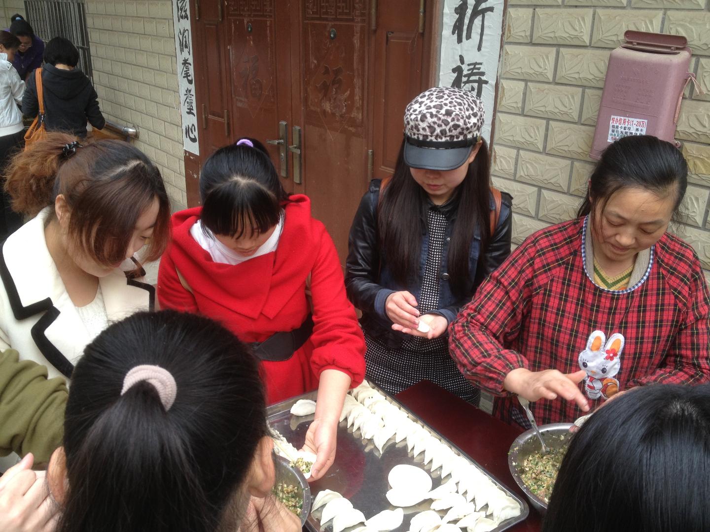 中午十二时许,包完饺子的同学们帮工作人员开始煮饺子,大家互相说着自己家乡吃饺子包饺子的惯例,工作人员则准备了一次性碗筷给同学们使用,气氛愉悦。