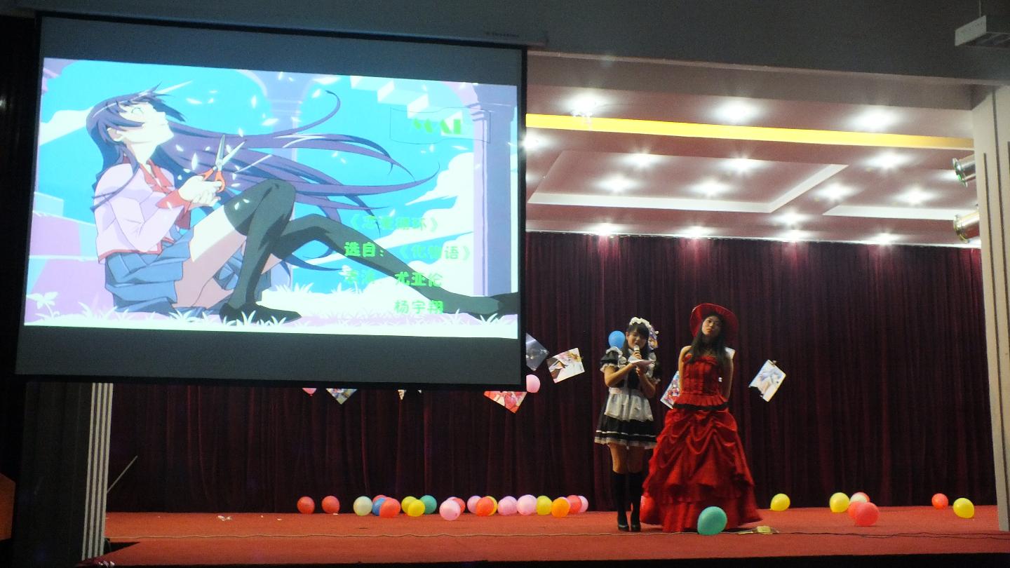 历经两个多小时的晚会在动漫社自制视屏《感谢一路有你》的放映中落下帷幕。“谢谢你一直以来陪伴着我,流年似水,冲淡了我的回忆,但仍要谢谢你给予我永不向现实妥协的中二情节,谢谢你给予我一份生活的乐趣,谢谢你给我一处休憩的场所•••一直以来谢谢你了。”