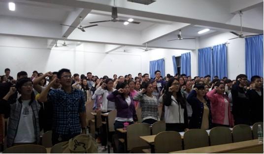 为了防止课堂上玩手机,提高听课效率,正心苑的同学于10月20日晚自发组织开展了主题为“拒做上课手机党”的活动。公共管理专业的徐锦晋同学做了倡议发言,倡议同学课堂多交流,课后多运动多阅读,做到既尊师重教,又充实自己。法学专业的张玲飞同学领头宣誓,她分析了学生群体中手机的使用量以及使用手机的利弊。使同学们认识到,手机的普及方便了同学的社交,带来了浅层娱乐,丰富了课余生活,但不合理的使用浪费了大量时间,减少了同学的运动量和阅读量,不利于同学的身心健康和学业发展。尤其是同学们在课堂里使用手机聊天,刷微博,玩游戏,看小说,听音乐等行为亟待纠正。最后还进行了学生签名活动,同学们积极响应。
