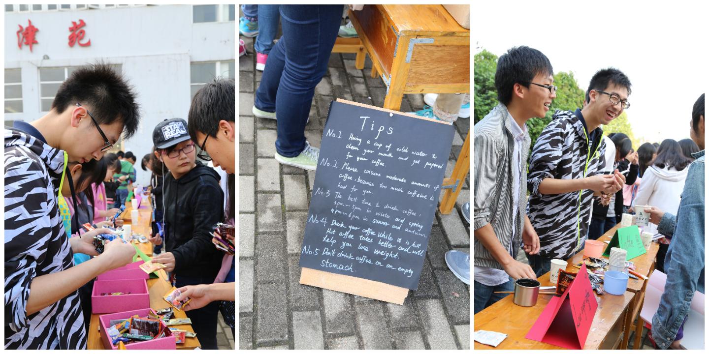 咖啡是世界三大饮品之一,这一词语源自埃塞俄比亚一个叫卡法(kaffa)的小镇,在希腊语中意味着“力量”与“热情”。4月22日下午,楚英俱乐部在问津苑正门举行了以“coffe”为主题的英语实践论坛,吸引了大批同学围观。