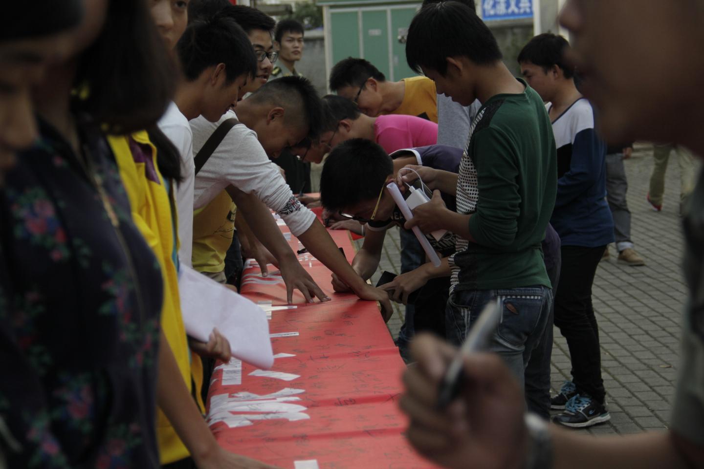 活动现场,老师、同学们纷纷在“勿忘国耻 振兴中华 以史为鉴 面向未来”的横幅上签下了自己的名字,表明了以史为鉴、为国效力的决心。据相关负责人介绍,签名结束后,这条横幅将会在校内显眼的地方继续悬挂一周以上。