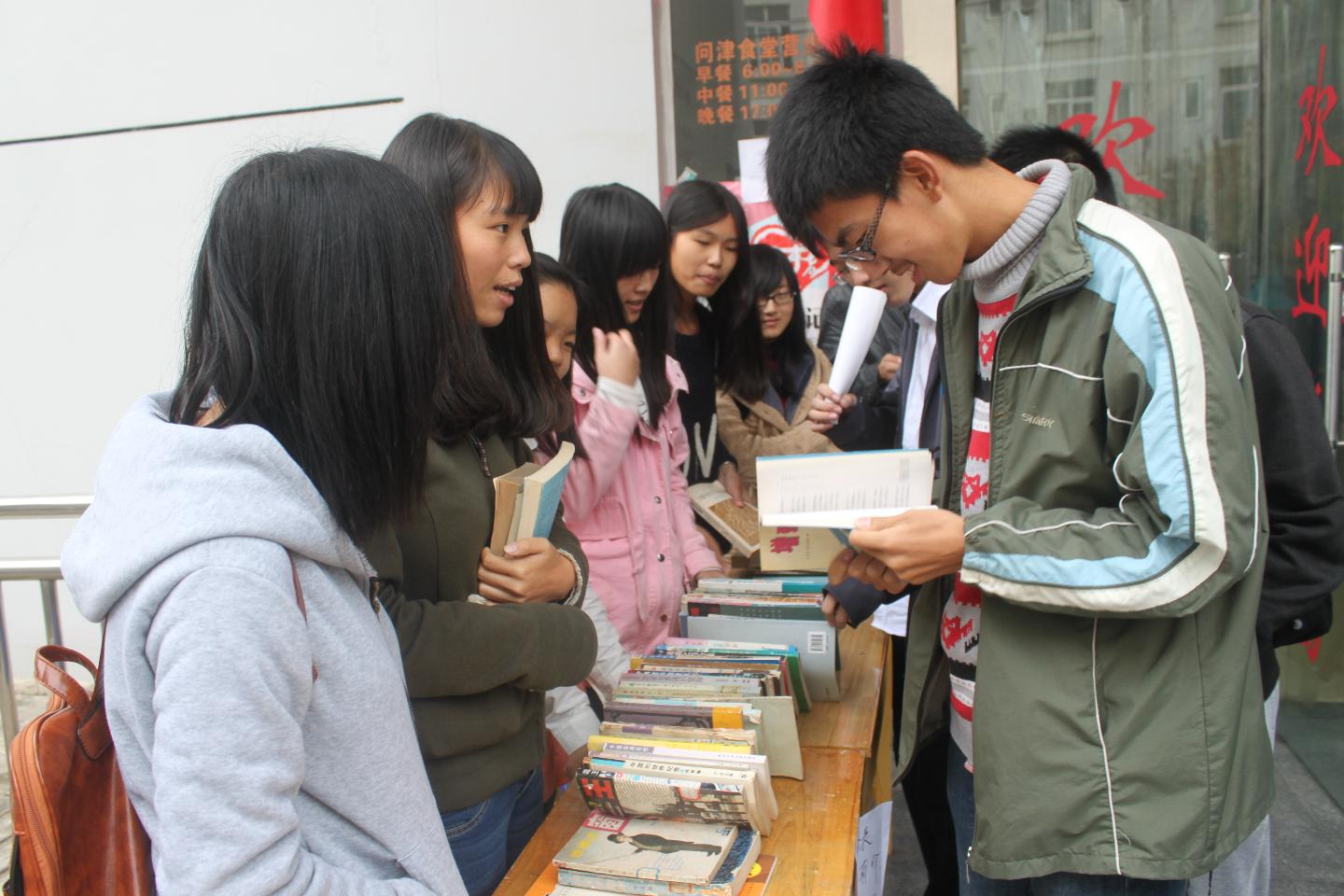 余先生捐赠的图书种类繁多,不但有学术性的书籍,还有娱乐性的小说。活动时引来了很多学生的注目,两张长桌子面前堆着的书不时地被路过的同学翻看并买下,“我觉得这种义卖图书的形式能把大家的爱心传递下去,大家不只是花钱买书,也是在奉献自己的爱心。今天我也买到了两本中意的书。”来自市场营销专业的杜爽如是说道。