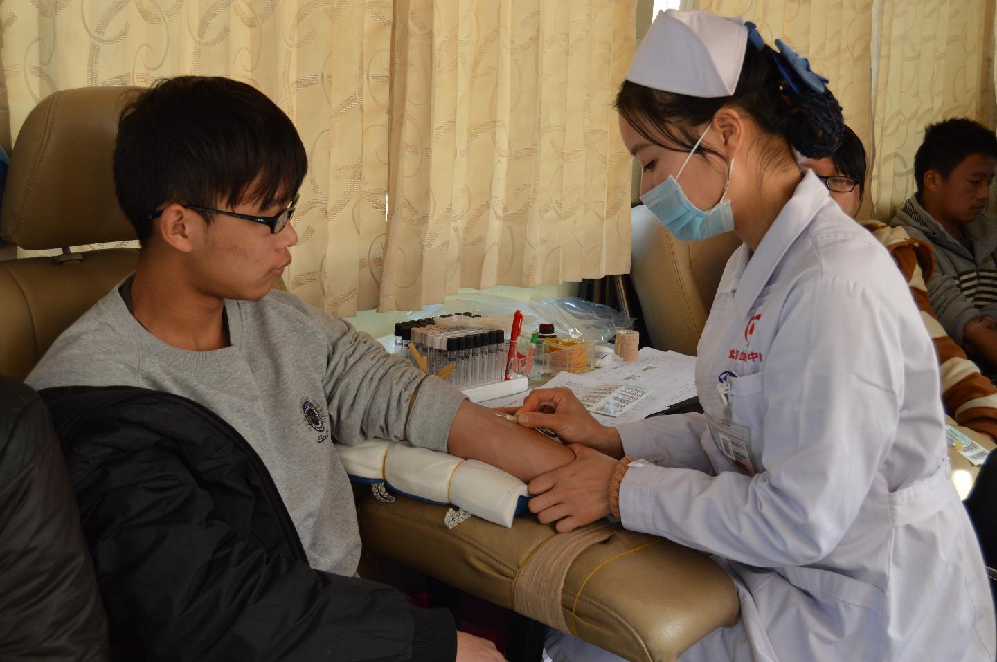 冬日的寒气逼人,冷风刺骨,即使这样,前来献血的学生仍然络绎不绝。在志愿者的组织下,学生们领表登记,验血,抽血,然后在处理后伤口后,再到休息区休息,整个过程都有志愿者的陪同,秩序井然。