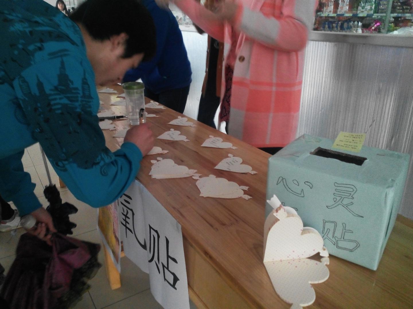 院学生会心理健康部的干事杨宇表示:“这次活动的主要目的在于让同学们袒露自己的心声,以匿名写便利贴这种新颖的方式,同学们更能接受,那些平日不好意思说的话可以通过这样一种方式表达出来。” 两个中午的时间,三百多张的便利贴全都写完。院心理健康服务中心的杨歆喃老师说:“今年是第一次办心灵氧贴活动,如果效果好的话,以后也会接着办。”