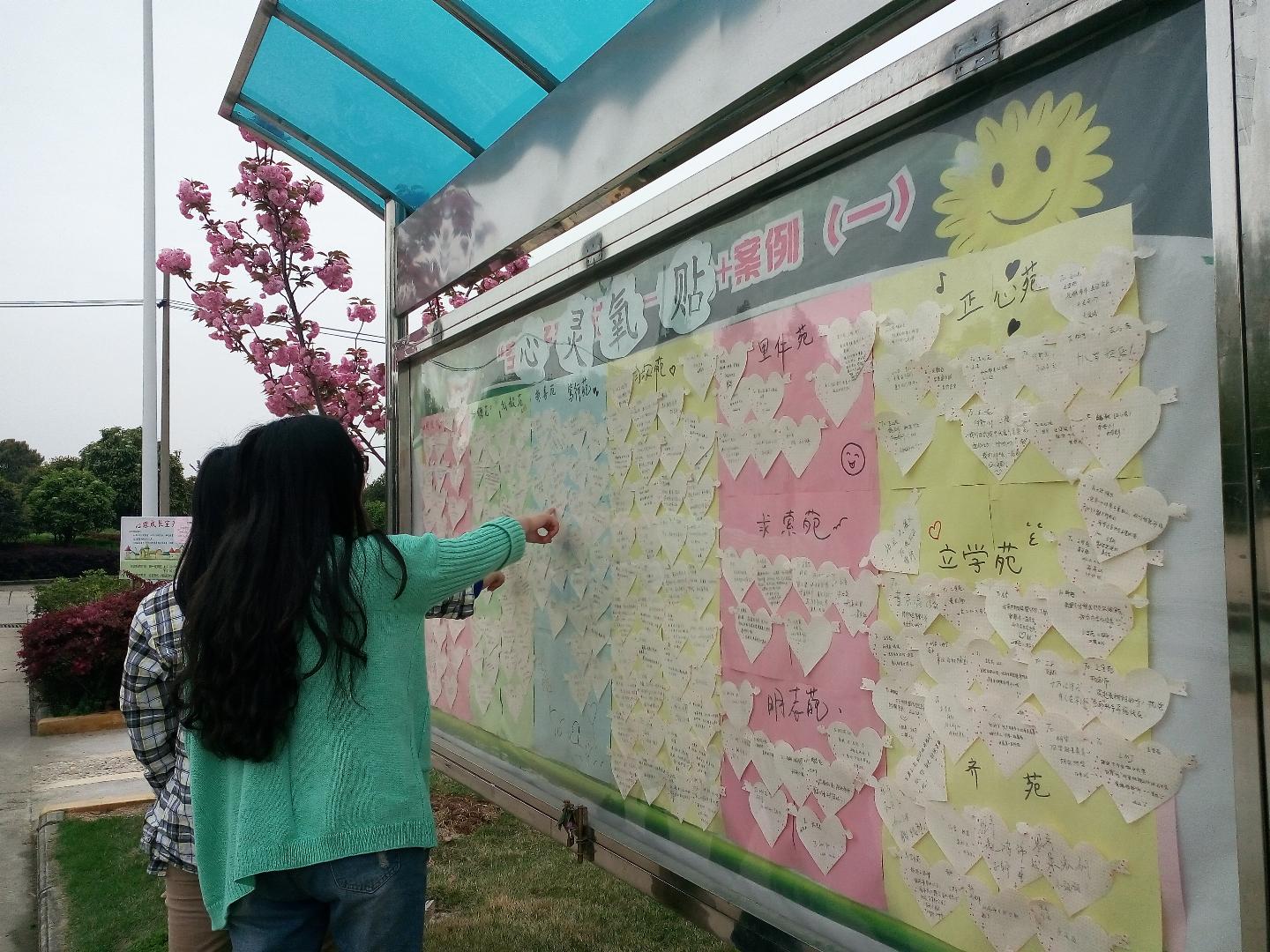 3月31日,学院心理健康服务中心进行“心灵氧贴”展出活动。一张张爱心便利贴按习苑分好,被整整齐齐地贴在位于心理健康服务中心门前的宣传栏中。