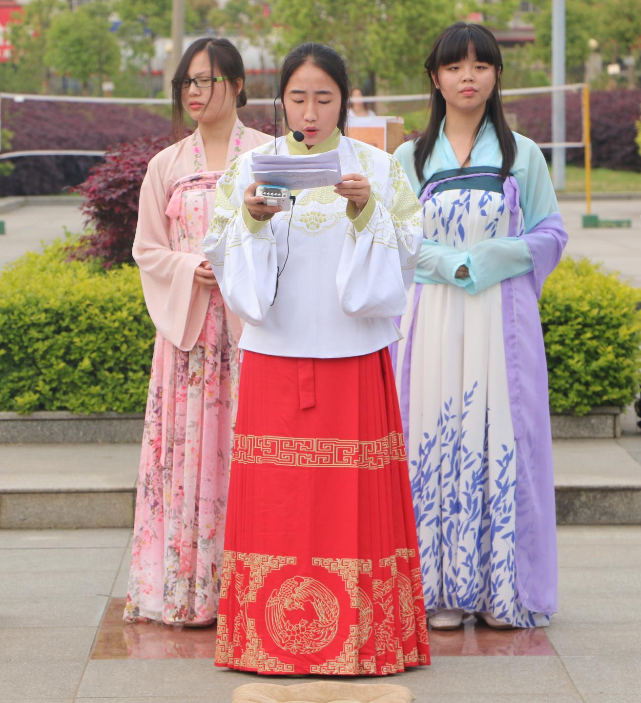 据国学社的刘琳同学介绍,这次举行的女子成年礼是国学社阳逻分社一年一度的传统活动,已经连续举办了三届,而今天同学们展示的是明制的女子成年礼,它和周制的成年礼有别。当时她们也是翻阅了大量古籍才弄清了这套繁杂的仪式。当有同学疑惑的问道:“你们说是汉服成年礼,但是你们身上的衣服却并不像汉朝的呀?”刘琳同学笑着给大家解释了这个误区,说道:“汉服指的是汉族的服饰,而非汉朝的服饰,两个不一样的。”