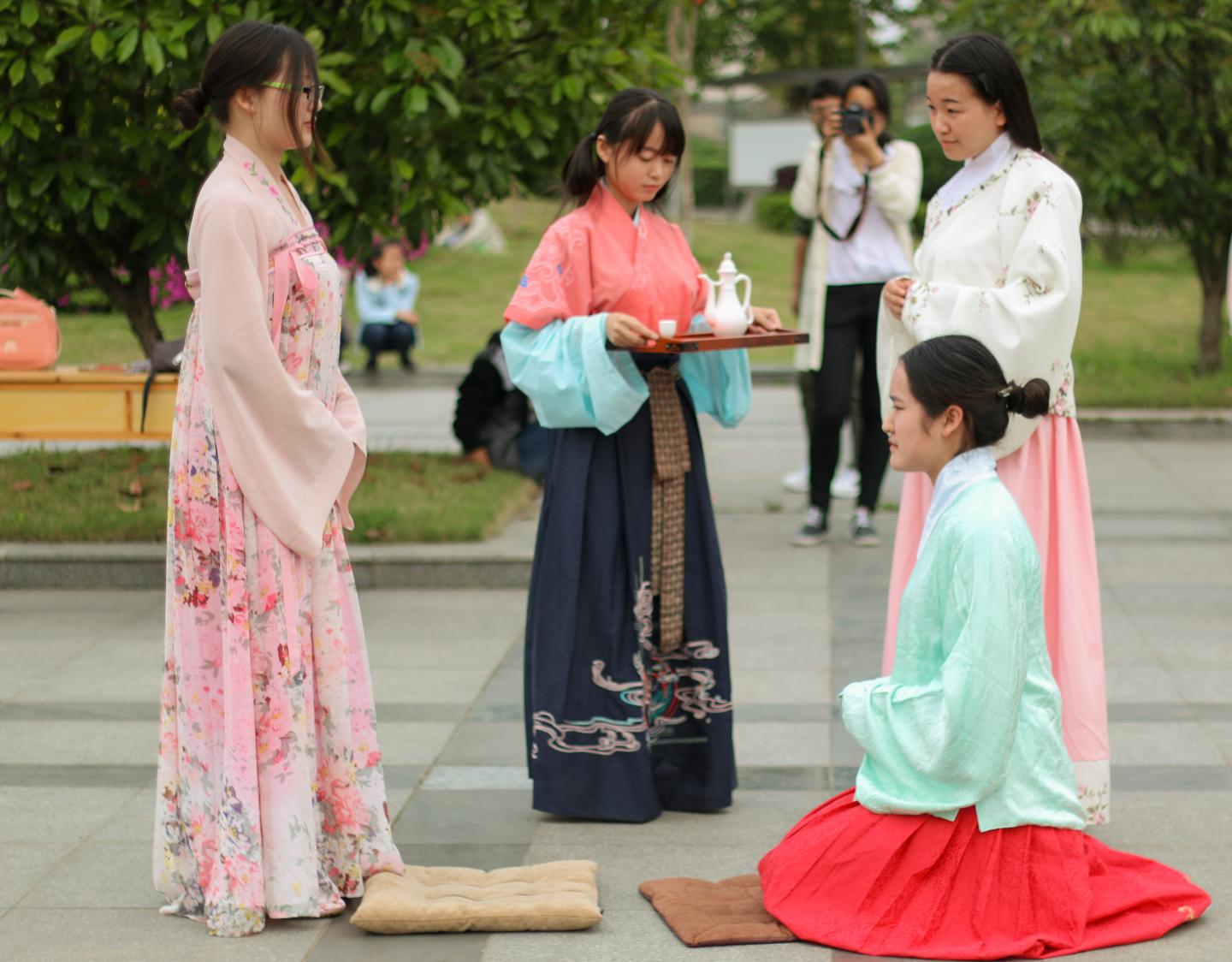 伴着悠扬的古筝,成年礼很快就结束了,但围观的同学们仍旧意犹未尽。有些同学久久没有离去,不停地对着身着彩衣丽服的“古代美女”拍照,留住这美妙的一刻。新闻传播学院的张慧芳同学说道:“中国古代文化真是博大精深,虽然现在已经废止了女子成年礼这个仪式,但是今天的这个活动仍反映出大家对古代文化的一种喜爱,我觉得我们应该批判性地继承并弘扬传统文化。”