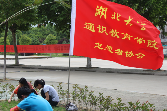 五月十三日下午两点,正值艳阳高照,志愿者们却已经在篮球场上集合完毕。志协干事们带领着参与此次校园除草活动的志愿者们来到教学楼侧门后的草坪处——也就是今天志愿者们要清除杂草的地方。