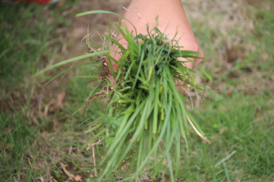 右手摘草,左手握草,掌中拿满一捆就起身扔进垃圾桶,一次又一次地站起蹲下,双手沾满灰黑色的泥土屑,但没有一个人有抱怨。在蔡老师的指导下,志愿者们认真地除掉杂草,踩实草皮,几片草坪上都是志愿者们辛勤劳动的身影。志协指导老师甄国辉也和志愿者们一起清理草坪上的杂草,还细心地将掉在地上的垃圾一起扔进垃圾桶里。学校里的保洁大叔也来帮助志愿者们将清除的一桶又一桶的杂草推到指定地点。