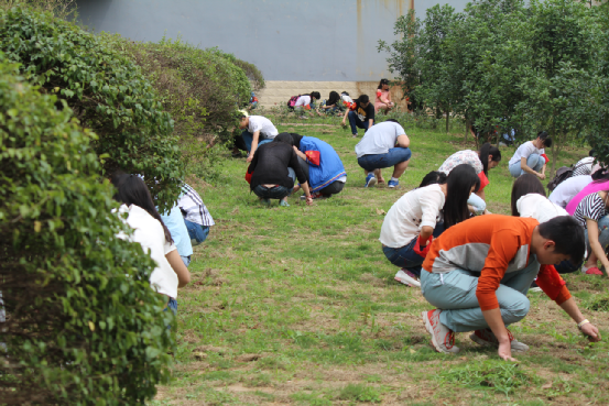 “一定要像这样贴着土把草拔出来,这样才能真正的做到斩草除根,不然不出两天,新草又会生根发芽。”学院办公室蔡朋林老师亲自给志愿者们做了示范,并一直在志愿者们身旁手把手地指导。