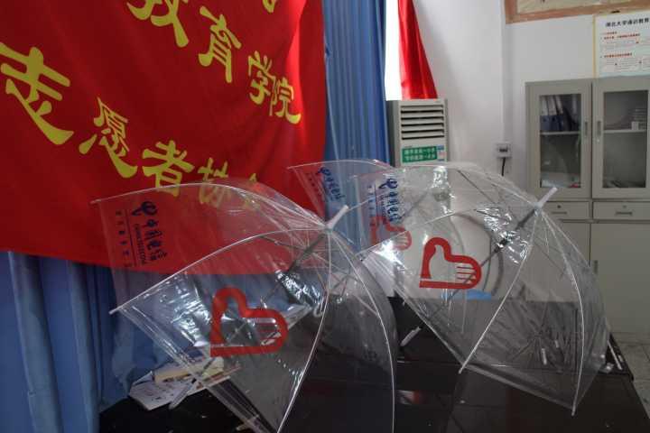 湖大本部从2013年便开始有爱心雨伞,与之不同的是,本部的雨伞都是从学生中回收的旧雨伞,且由保安代为管理。而阳逻这边的爱心雨伞,由志协技术部设计样式,拿去厂里定制一百把雨伞,由志协值班人员统一管理。伞身透明,并印有志愿者协会标志,他们表示:“做成透明的,还是因为担心有人拿去当遮阳伞,毕竟我们的初衷还是为了给同学们应急提供便利。”