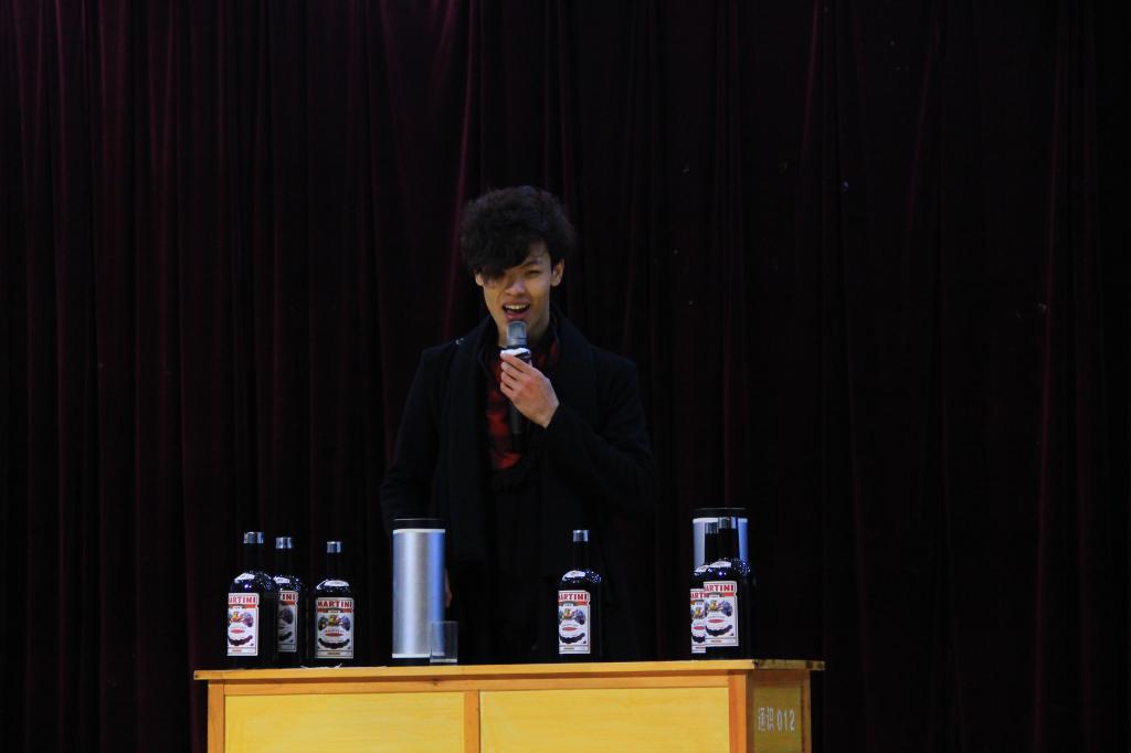 来自湖北工业大学的大四学生陈实,曾在湖北高校魔术联盟第一届冠军杯获得铜奖。他首先登场为大家表演了大型幻术,四人为陈实推上火笼,陈实用深色布块盖住笼子,再次拉开,火已熄灭,而魔协会长李雅洪赫然出现在笼中。在大家的惊叹声中,主持人梁陈走向台上,用魔术变出话筒,并请李雅洪对魔协简单介绍,李雅洪同时也对前来观看的师生表示欢迎。