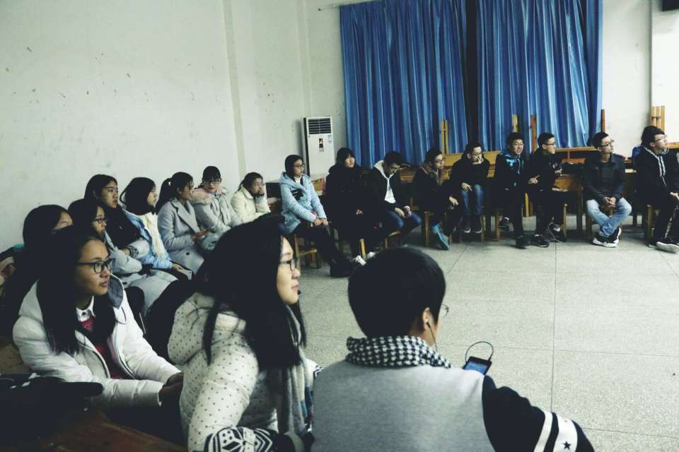 “WE CHAT, NOT WE CHAT.”11月24日,A级内射毛片免费的新闻传播2班开展了以“青春不应活在朋友圈里”主题的团会,PPT上写着如此字样。这次团会为呼应“朋友圈”的主题,特意采用了圆桌会议的方式——19张桌子围成圈,全班学生围桌而坐。