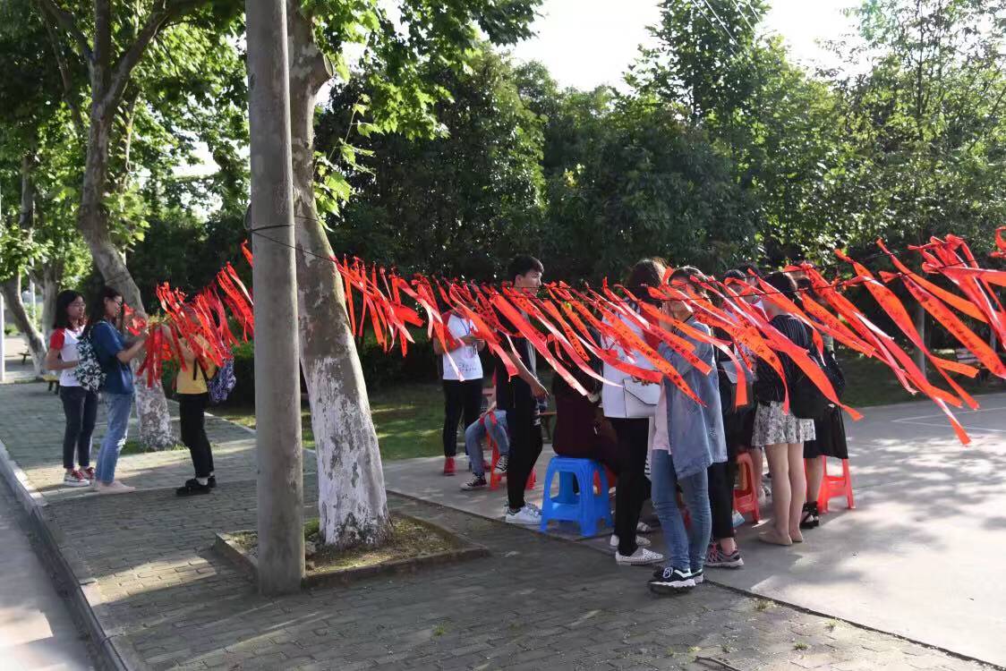 活动当天,现场气氛十分热闹,学生的兴致都非常高。活动准备的570条红丝带全部用完。“母亲节来临,祝您身体健康”、“希望您每天开心,不再为我操心”各种美好的话语与期待都寄托在了红丝带上。部分学生选择亲手将写上祝福的红丝带系在事先准备好的尼龙绳上,而还有部分学生则将丝带放在盒子里由工作人员代挂。