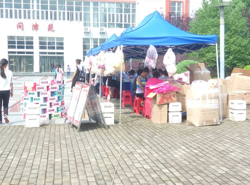9月26日,在湖北大学阳逻校区的问津苑食堂门口,出现了四顶蓝色帐篷和两辆印有“爱心献血”字样的大巴车,与此同时,一场特别的活动正在开展,由武汉血液中心和街道办事处工作人员共同参与的“爱心献血活动”来到了校园之中。