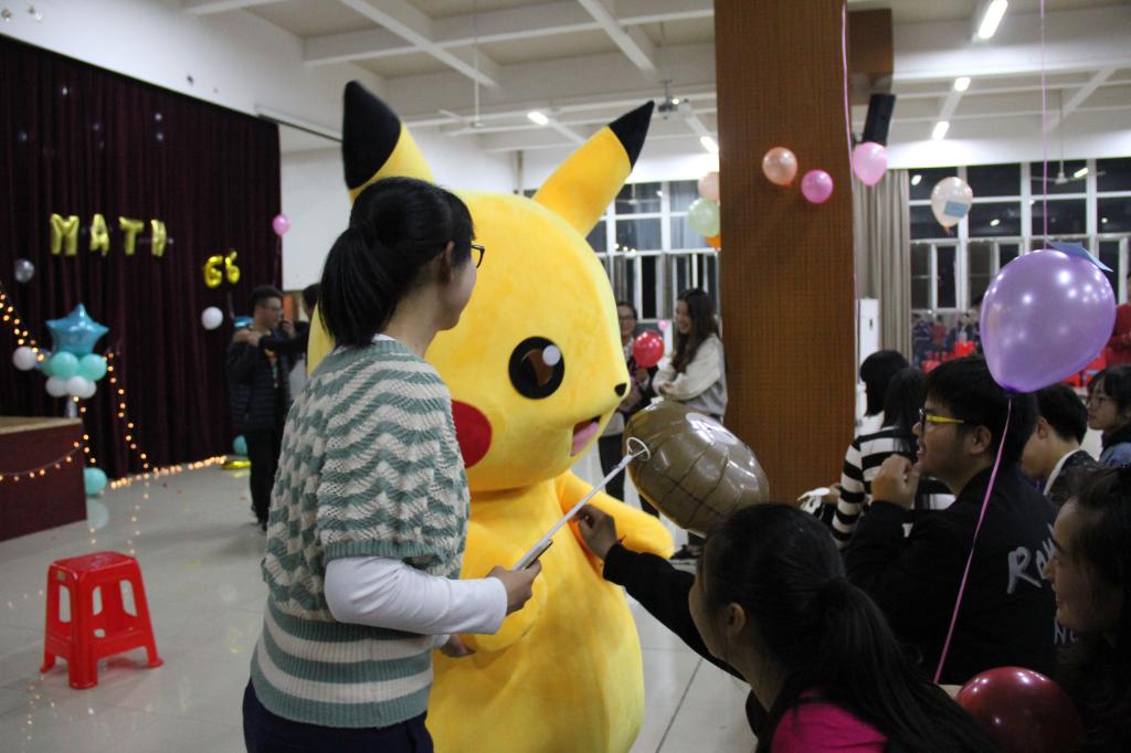 此次活动分为节目表演和游戏两个环节。伴随着第一个节目的歌曲串烧,晚会正式拉开序幕。尤其引人注目的是,台下有皮卡丘人偶与同学们互动,激起了同学们极大的兴趣。小品《学霸社与学渣社》在令人捧腹的同时也给同学们带来了对未来学习目标的思考;独具特色的杯子舞让在场的同学们不禁随之踏着节奏;而呼声最高的节目《情歌王》歌曲串烧通过歌剧一体的模式呈现,让同学们既能感受到情歌的深情,又能在情景剧中找到笑点;节目配音秀通过对电视剧的神剪辑与配音,展示了大学生活的酸甜苦辣,在场同学也时不时发出感叹表示感同身受。在游戏环节中,主持人让所有男生拉下事先准备好的贴在天花板上的气球,每一个气球上对应的是班上女生的名字,在自行找到对应的伙伴之后,彼此还互赠了早已准备好的礼物,然后分组依次进行了猜歌迷、动作接龙的游戏,现场气氛十分欢乐。