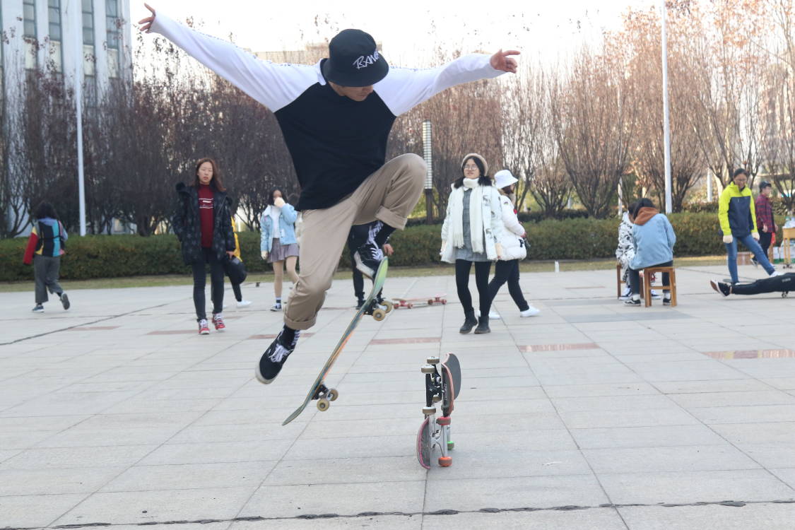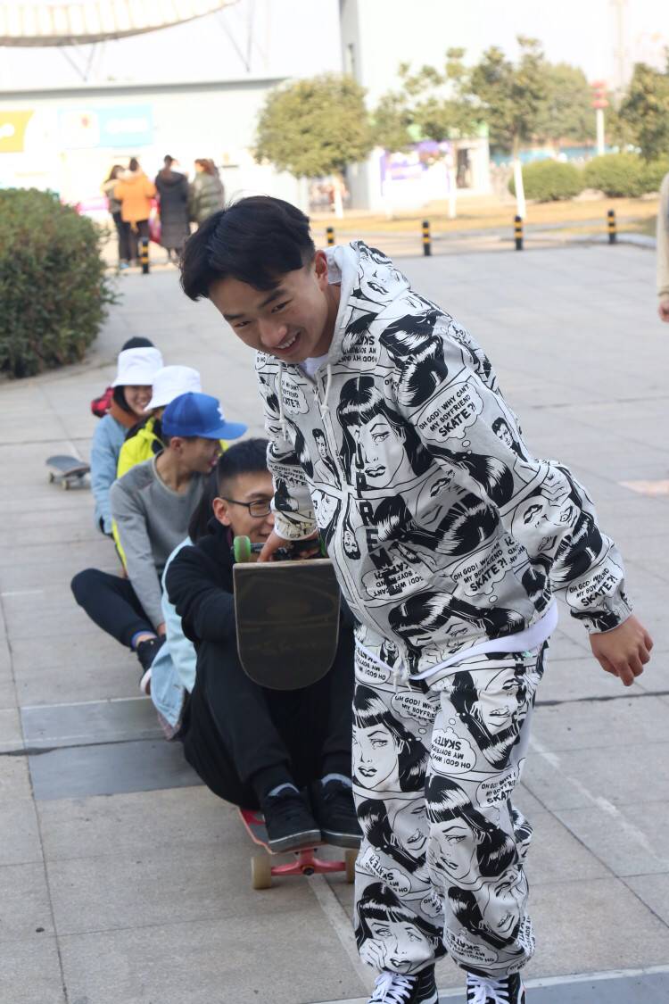 为了此次比赛,本部的学长、滑板协会的社长都来到了阳逻,给大家展示了非常酷的动作,如过立。