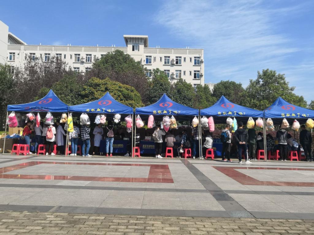 上午9点,问津食堂正门广场前两辆献血车停靠。广场边上还搭有一排临时棚,用于工作人员检查自愿献血的学生们的血液情况。下课后,学生们来到广场上踊跃参与献血活动。