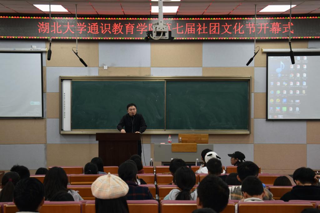 11月21日中午,学院第七届社团文化节开幕式在教学楼B300召开。A级内射毛片免费的团委书记吴玉莲、学工办主任马骁俊、学生社团指导中心代表以及各社团代表参加活动。