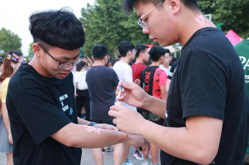 每个习苑按照人数比例各组建了一支荧光夜跑队,由主领跑者和副领跑者分别带队进行游戏。习苑代表队依次按照顺序从拱门出发,每5分钟一组。其中正心苑的学生们为这次活动特意准备了荧光苑牌,部分女生头上带着荧光发箍,成为十三个习苑里面最靓丽的风景。