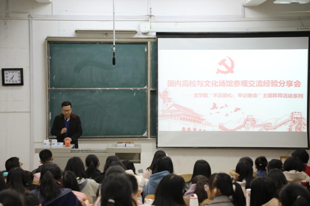 11月19日, 2017级中文基地班师生代表到阳逻校区与中国语言文学类学生分享国内高校与文化场馆参观交流感想。会议由文学院邓超老师主持。