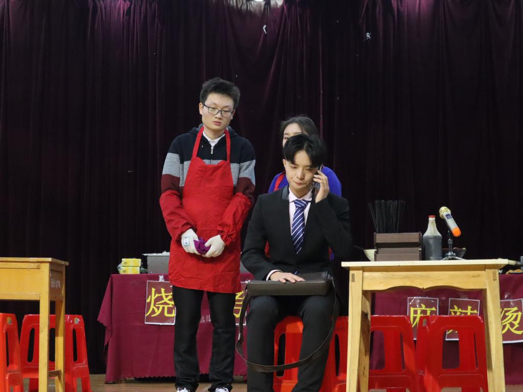 “我们结婚啦!今天我们结婚啦!”一阵吆喝传来,身穿大红色喜服演员,带着喜糖来到台前,朝台下撒了一把把糖,换来台下一阵又一阵掌声。这一幕发生在11月28日学院问津苑二楼,司南剧团在此开展主题为“感受生活、演出自我、秀出精彩”的话剧表演。