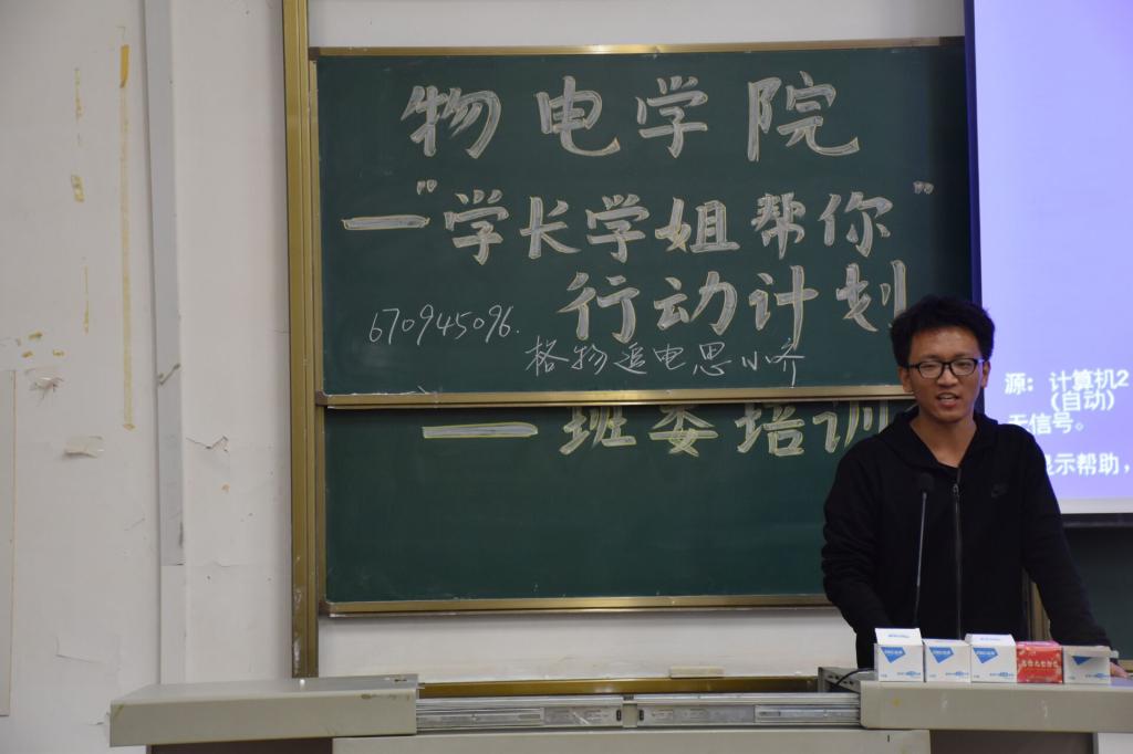 11月11日晚,2019级物电学院学长学姐来到阳逻校区,于教学楼B309与2020级思齐苑各班委开展朋辈交流班委培训会,辅导员程垚瑞参与此次会议。