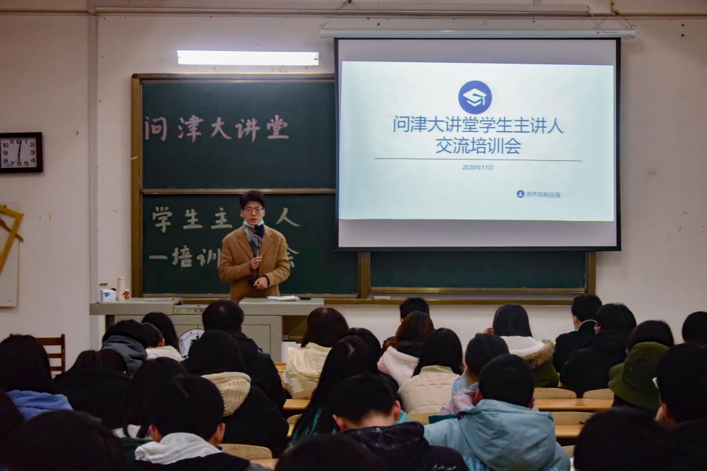 11月26日晚,学院“问津大讲堂”学生主讲人培训交流会于教学楼B205顺利开展,思齐苑辅导员程垚瑞主讲,和学生们交流、分享经验。