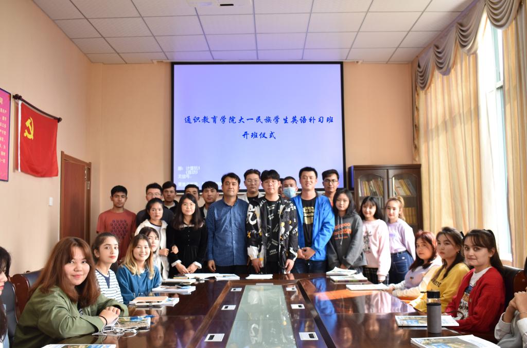 补习班课程开班仪式上,院党委副书记韩凯向民族学生充分表达了学校对其学习和生活的关爱,希望他们能够尽早适应大学新生活,切实提升英语水平。教师艾麦提江·吐尔逊阐明了学院开办民族学生英语补习班的目的,对课程开展的模式和进度安排进行了详细解答。