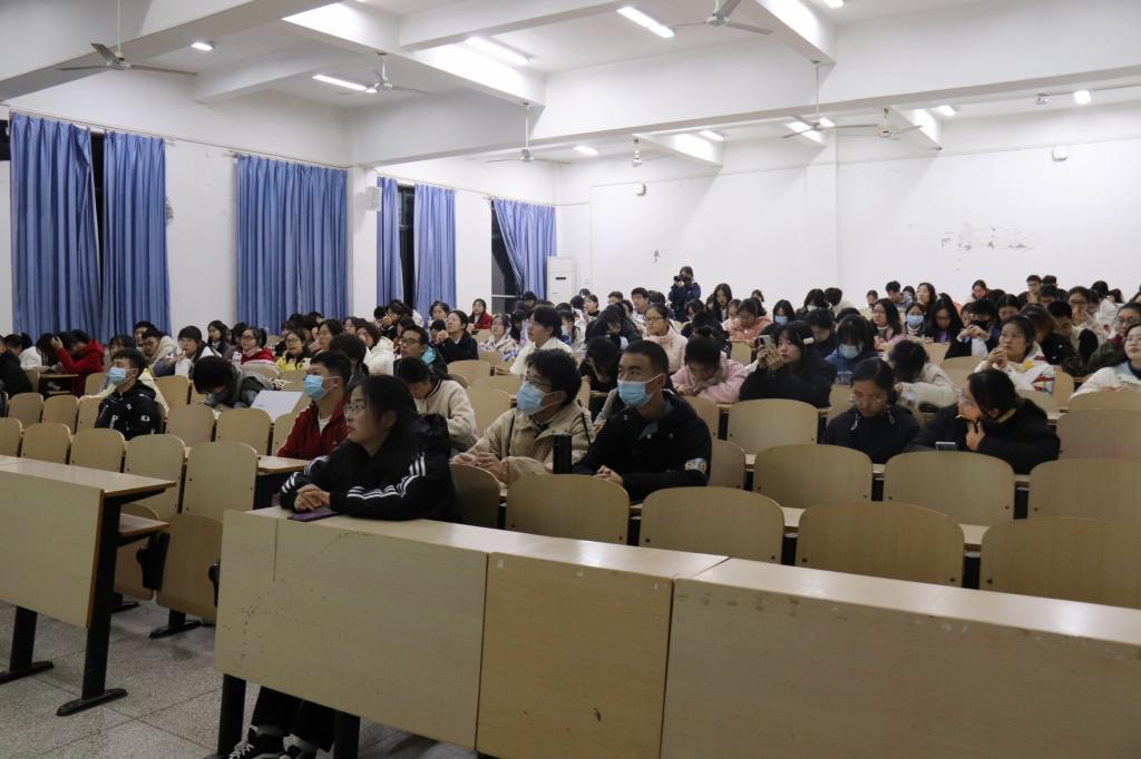 魏祚麟以自身经历展开讲解,活跃了讲座气氛,在座学生都侧耳以听。“目的决定手段。演讲是表达你的观点,吵架是噎住对方,而辩论是说服中立的第三方……”魏祚麟用短短几句话就阐明了辩论与演讲、吵架的区别,向大家展示了辩论的独特之处。他向学生们简要介绍了辩论的发展背景,并穿插一些经典的辩论比赛来辅助学生理解一些专业名词,以趣味性的语言引导学生们去了解并学习辩论。