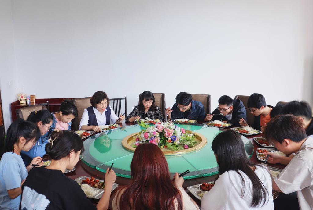 为进一步了解学生学习生活情况,增进师生之间的沟通联系,5月12日中午,学院在食堂二楼举行午餐会,副院长向祖慧和来自弘毅习苑的11名学生代表共享午餐。
