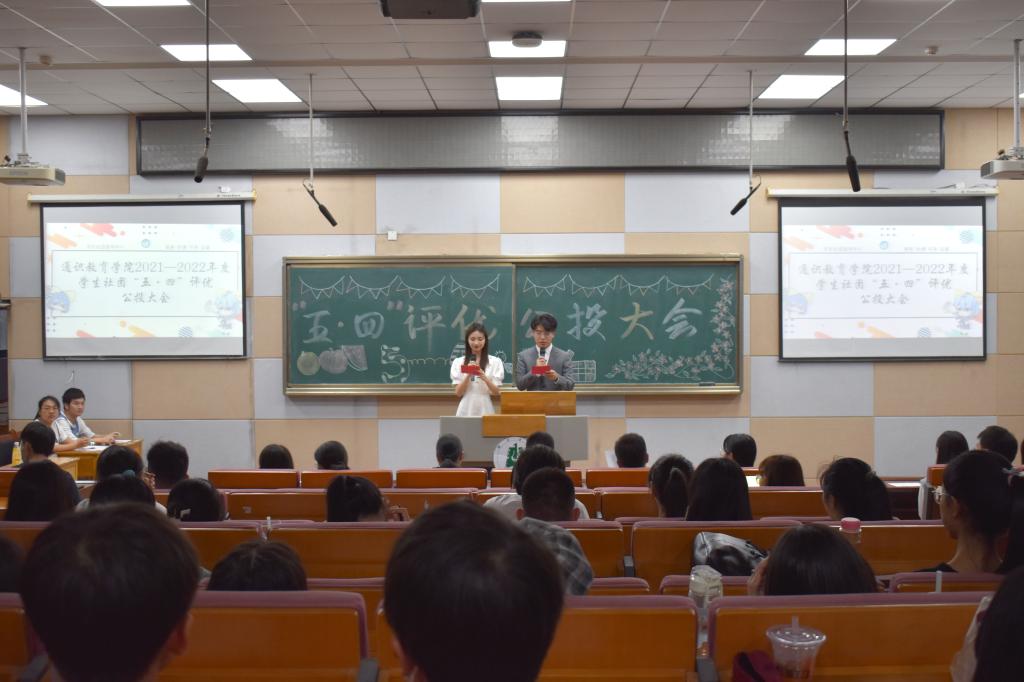 5月12日晚,我院学生社团五四评优公投大会于问津楼B300举行。团委指导老师胡喆罡、学生社团指导中心指导老师段秋炯、学生社区团工委指导老师冷自衍等辅导员、学生社团代表、学生组织代表出席此次公投大会。经过315会员维权活动、会长考核、评优材料审核等环节,本次共有二十个社团进入公投大会,角逐“五星社团”称号。