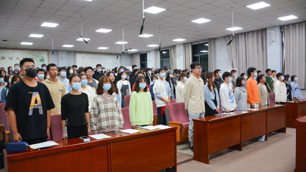 会议伊始,全体迎新志愿者起立,齐唱中国共产主义青年团团歌。