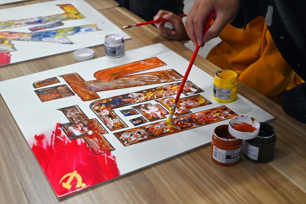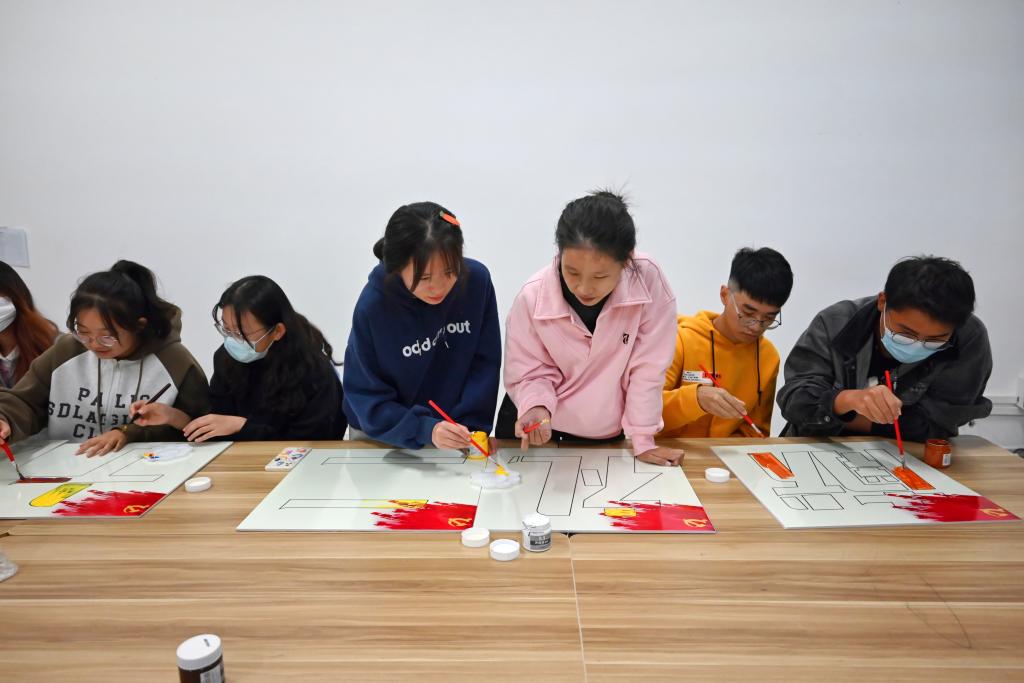 活动期间,艺术学院师生组织开展了以“献礼二十大,笃艺新征程”为主题的手绘活动。活动现场,下班党员马世杰与学院学生亲切交流,他指出:本次活动的灵感来源于党的二十大的胜利召开,旨在为同学们提供展现创意和促进交流的平台。在认真学习党的二十大精神后,他深刻认识到将本专业学生活泼且有创意的特点融入到党的宣传工作中的重要意义,相信通过开展本次活动可以将同学们所学的专业知识应用到党的宣传工作中,学以致用的同时加强学生思想政治教育,帮助美术专业的学生从思想上和行动上积极向党组织靠拢。活动现场气氛活跃,师生齐力,共同创作出了一幅幅精美的手绘作品。