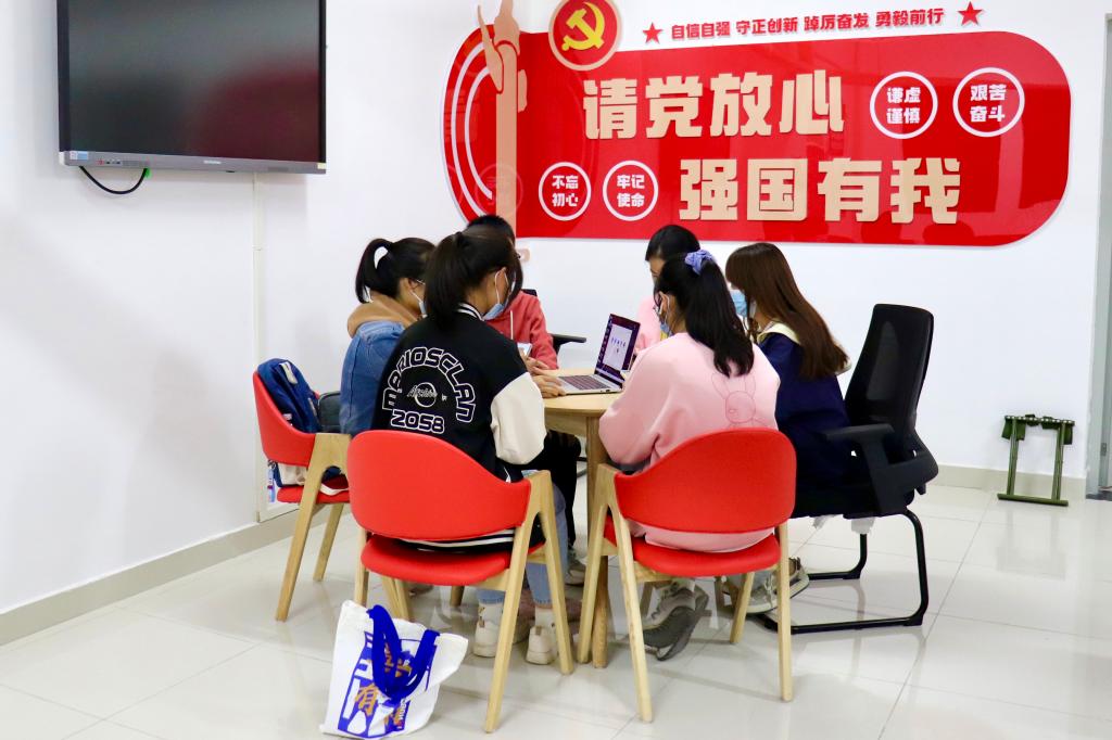为强化党建引领,阳逻校区专门建设了党团活动中心,供学生进行党团建设相关活动。“五四连廊”党团活动中心文化墙突出红色元素,重点体现党的精神面貌、历史文化。飘扬的丝带,鲜红的党旗,蜿蜒的长城,着力弘扬党建精神,引领着我们齐心跟党走。
