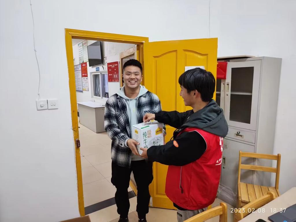 在此次慰问活动中,学院为各位队员发放了牛奶,星火青年先锋队指导老师程一带领队员们回忆并总结了上学期的工作。学院星火青年先锋队是冲锋在前的先锋队伍,在关键时刻都能看到他们的身影,尤其是在疫情防控阶段,星火青年先锋队协助学院进行相关工作,配合医护完成了全年累计40余万人次,110余次核酸检测工作。在开展核酸检测期间,他们是当之无愧的“护行者”,在紧凑的课程学习中抽出时间充当控场、扫码员等角色,为每次核酸检测的顺利进行保驾护航。而在疫情紧张时刻,他们团结一致、共克时艰,穿上防护服、戴上防护面罩,成为了“最美逆行者”,展现出了新时代青年敢担当、善作为的品格,为学院疫情防控工作的开展提供了极大的帮助,与全体同学共同营造了一个健康稳定的校园环境。程一对星火青年先锋队队员们在疫情当头不畏艰险的精神进行了肯定与赞扬,他希望各位队员能够继续发扬无私奉献,敢于担当的优良作风,充分发挥青年先锋在校区治理和应急管理中的主体作用,继续为学院发展贡献卓越力量。