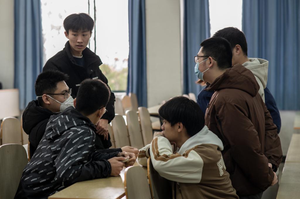 在简短的开场之后,导师各自“认领”自己的学生,与学生们面对面而坐,从自我介绍开始,展开对彼此的了解。在王文峰教授的小组里,被谈论地最多的问题,是学生未来专业分流与考研。王文峰说:“你们现在最重要的,就是要把基础打好,不断学习,不断进步,然后结合自己的情况,进一步考虑不久后的专业分流和未来的深造问题。”