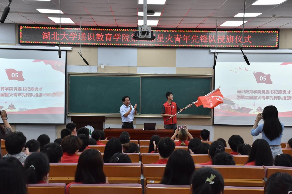 仪式最后,廖良才为第二届星火青年先锋队授旗。