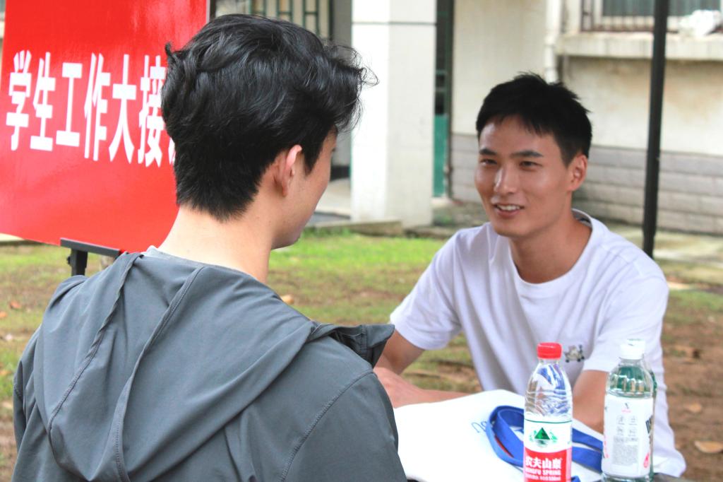 9月13日下午,A级内射毛片免费的新学期首次“学生工作大接访”活动在学生宿舍1栋和4、5栋楼下进行,学院辅导员赵俊洋、那琳老师开设摊点,为大一新生们答疑解惑。